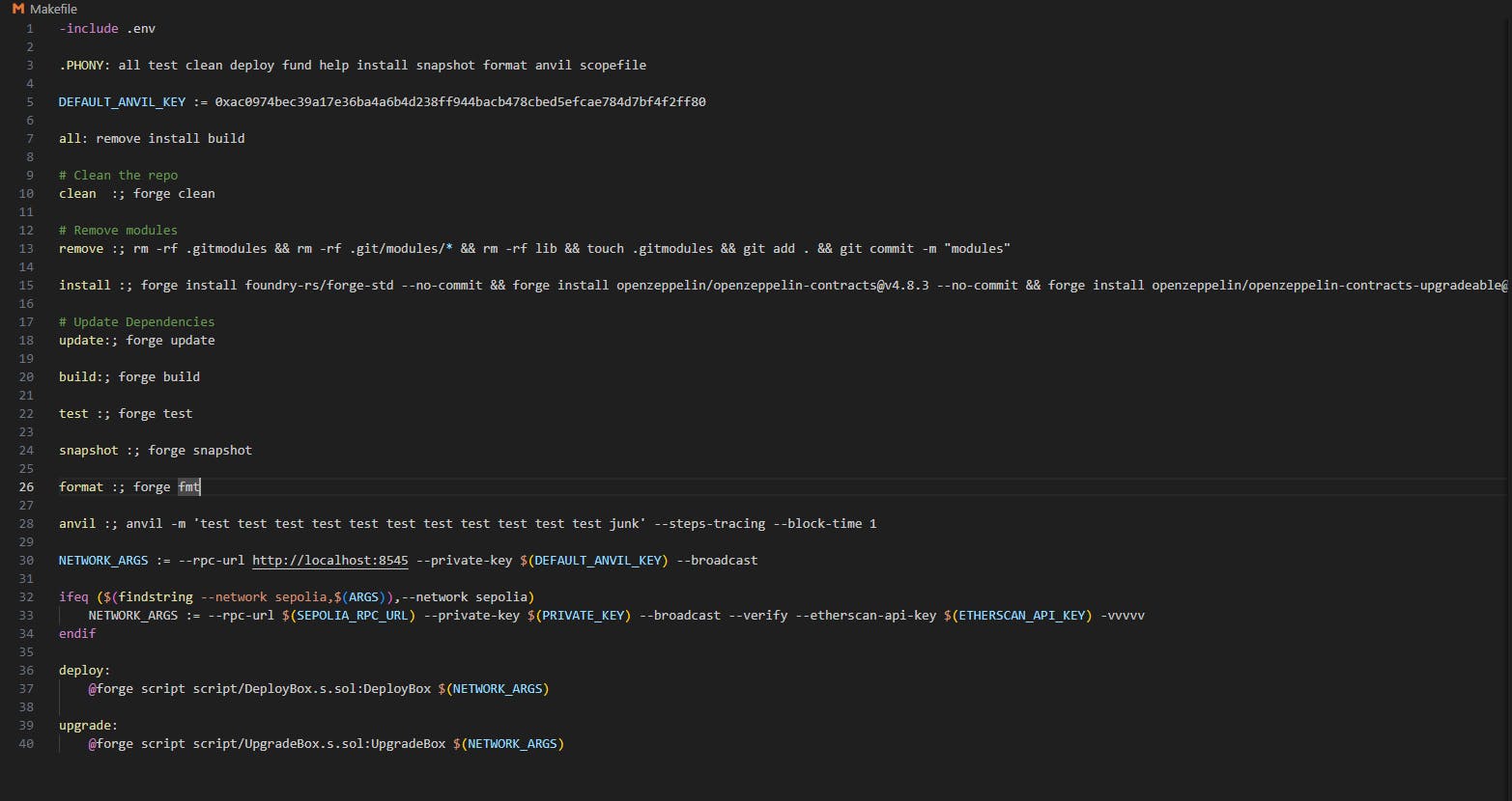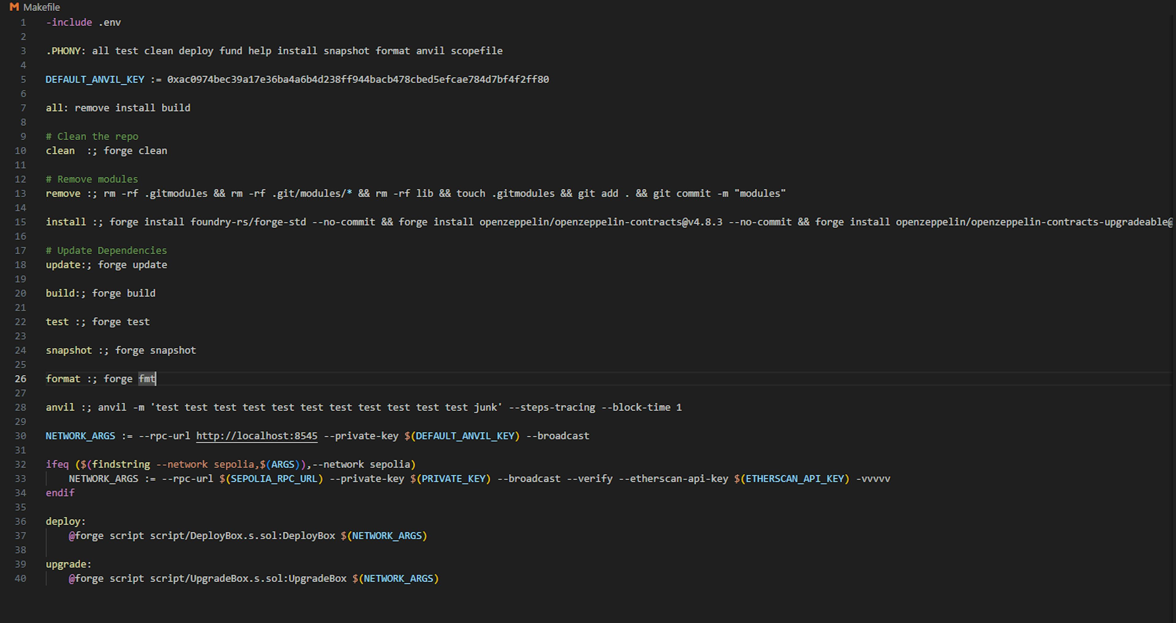 - Deployment: Deployed the contract on local and test networks using Foundry and a streamlined Makefile for efficient deployment.