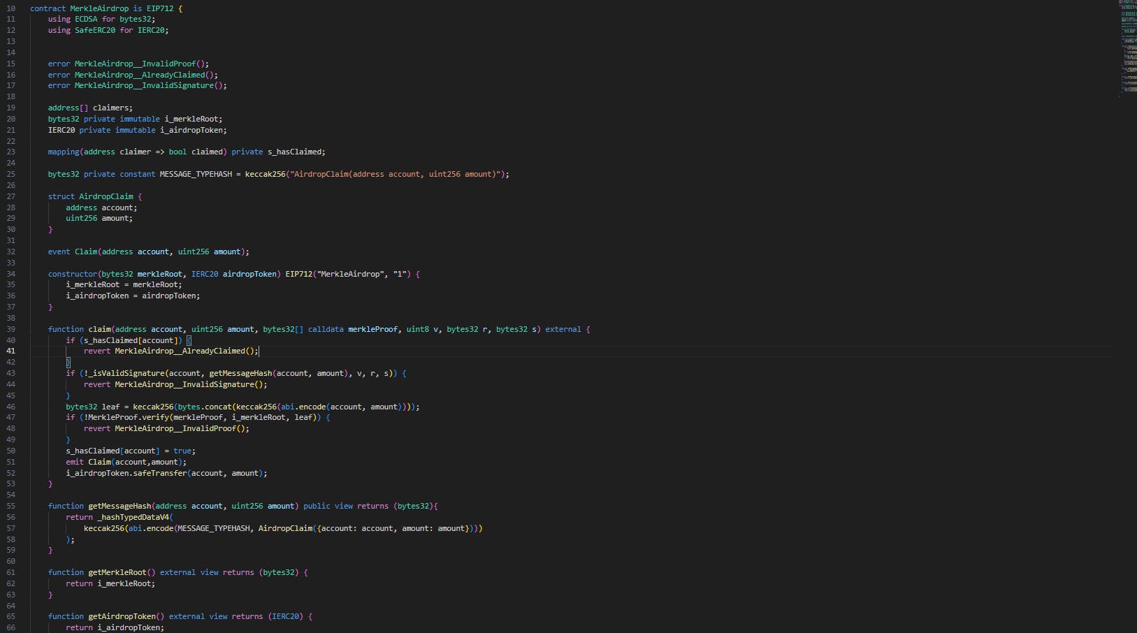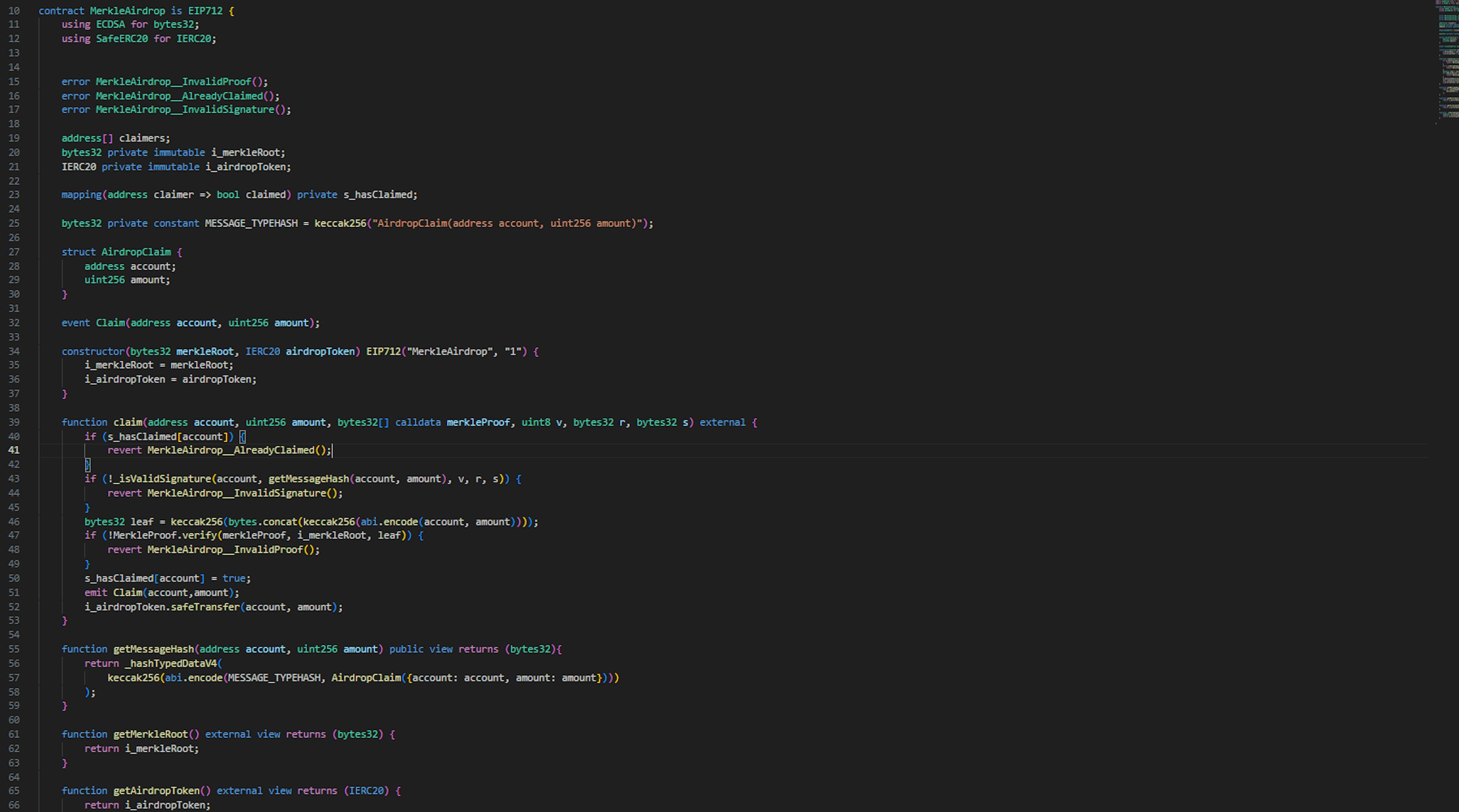 - Solidity: Developed the MerkleAirdrop smart contract to handle efficient and secure token distribution.