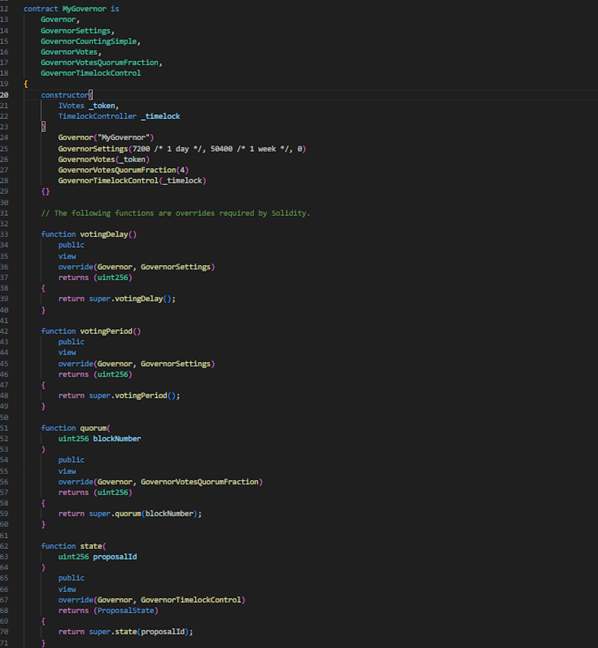 - Governor Contract: Manages the entire lifecycle of proposals, from creation to execution.
