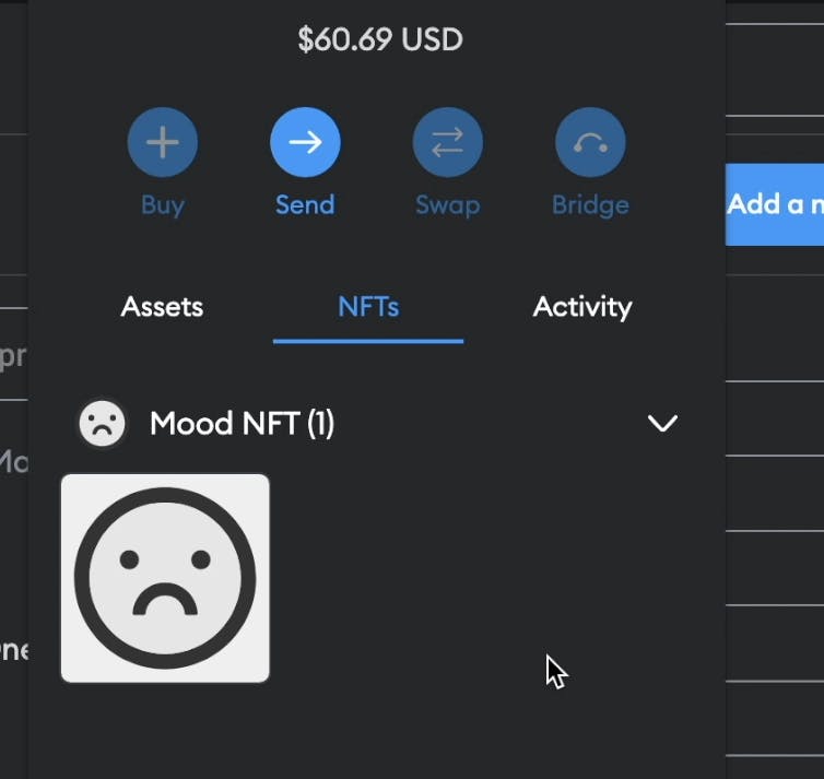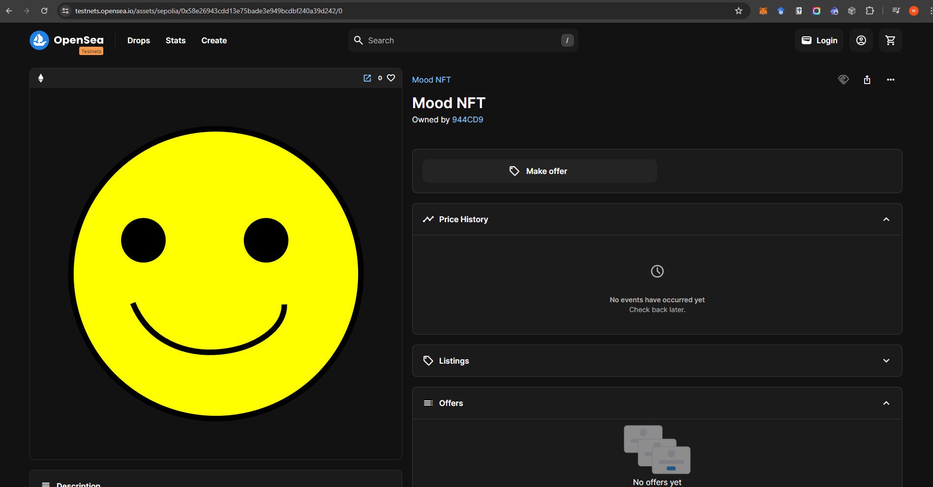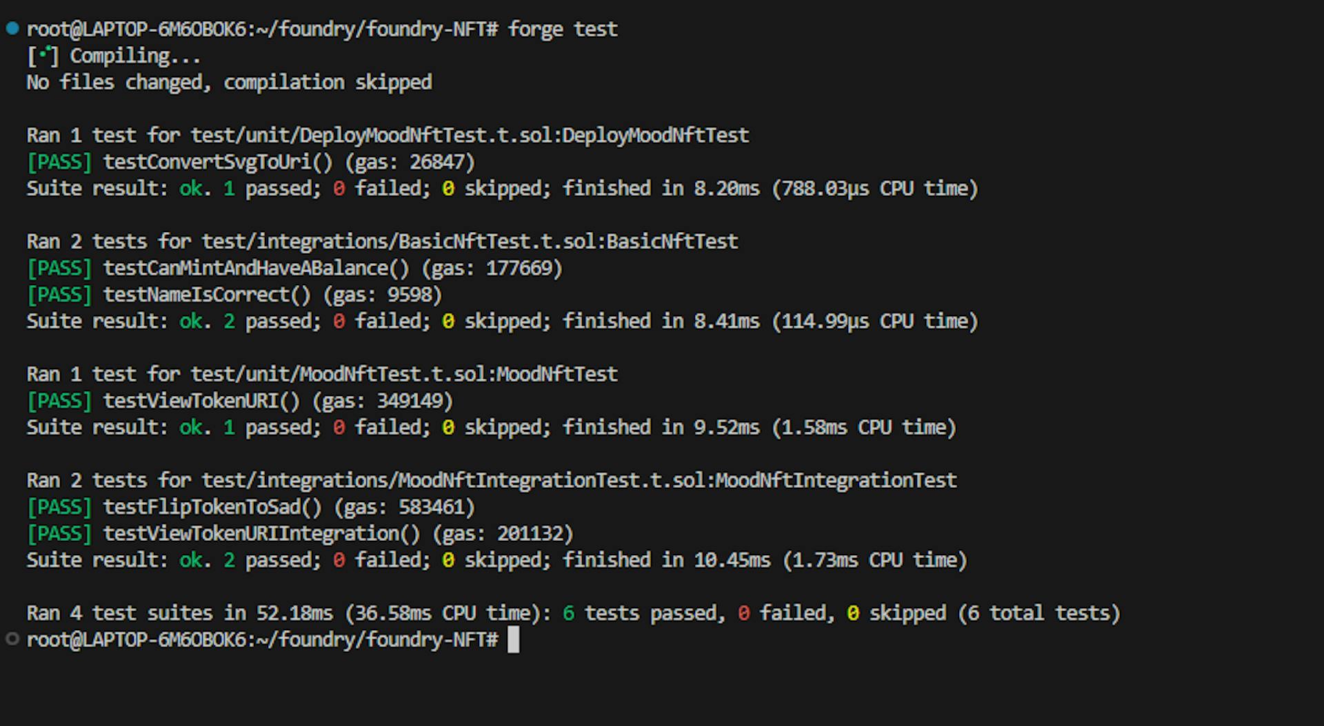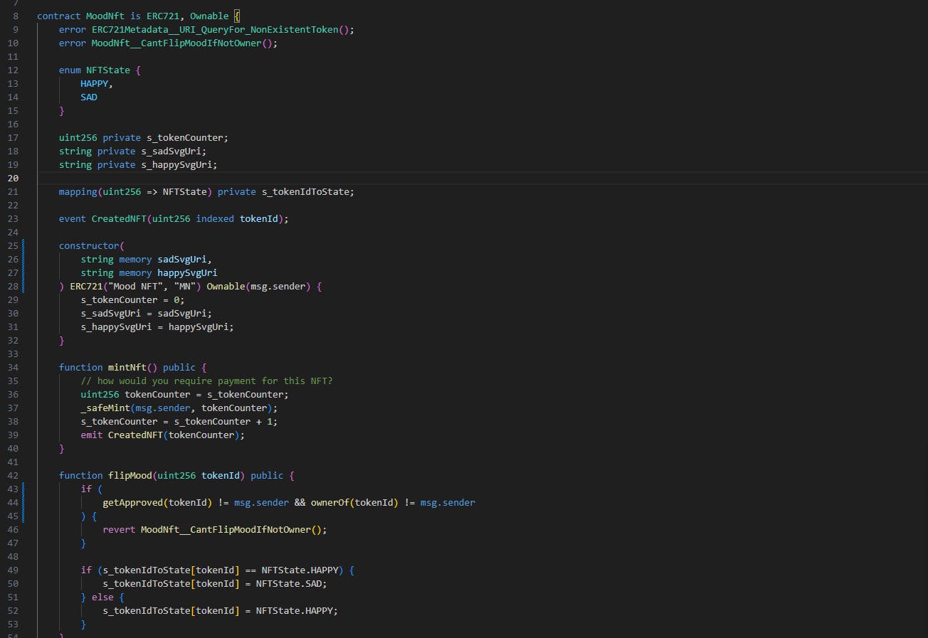 - Overall, the Mood NFT project showcased my ability to integrate dynamic SVG rendering within NFTs, providing a unique and interactive user experience.