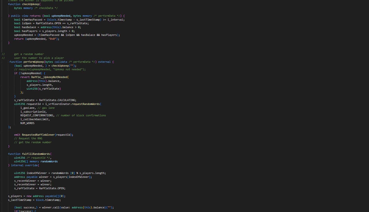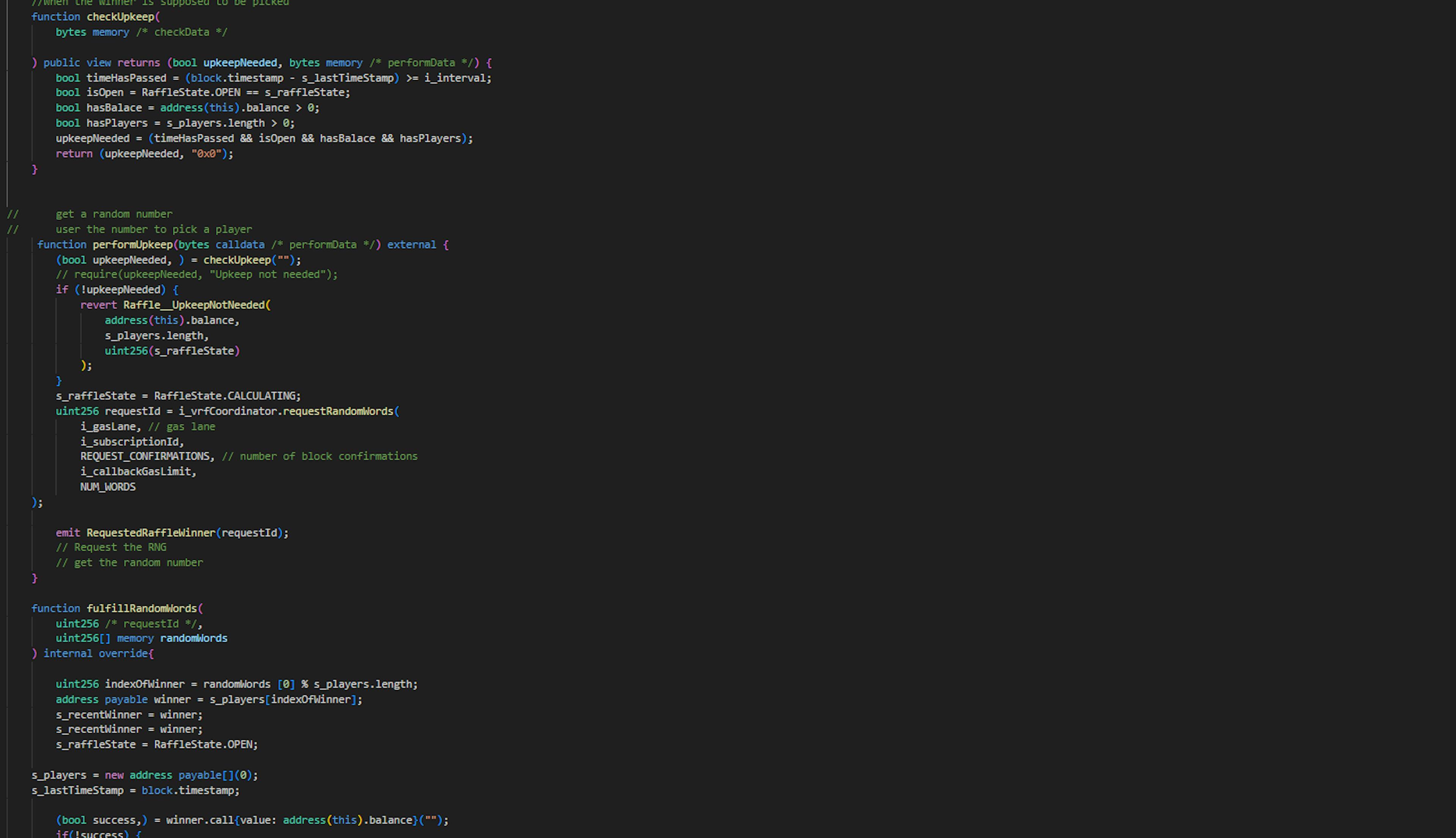 - Picking a Winner: The contract requests a random number from Chainlink VRF to pick a winner.