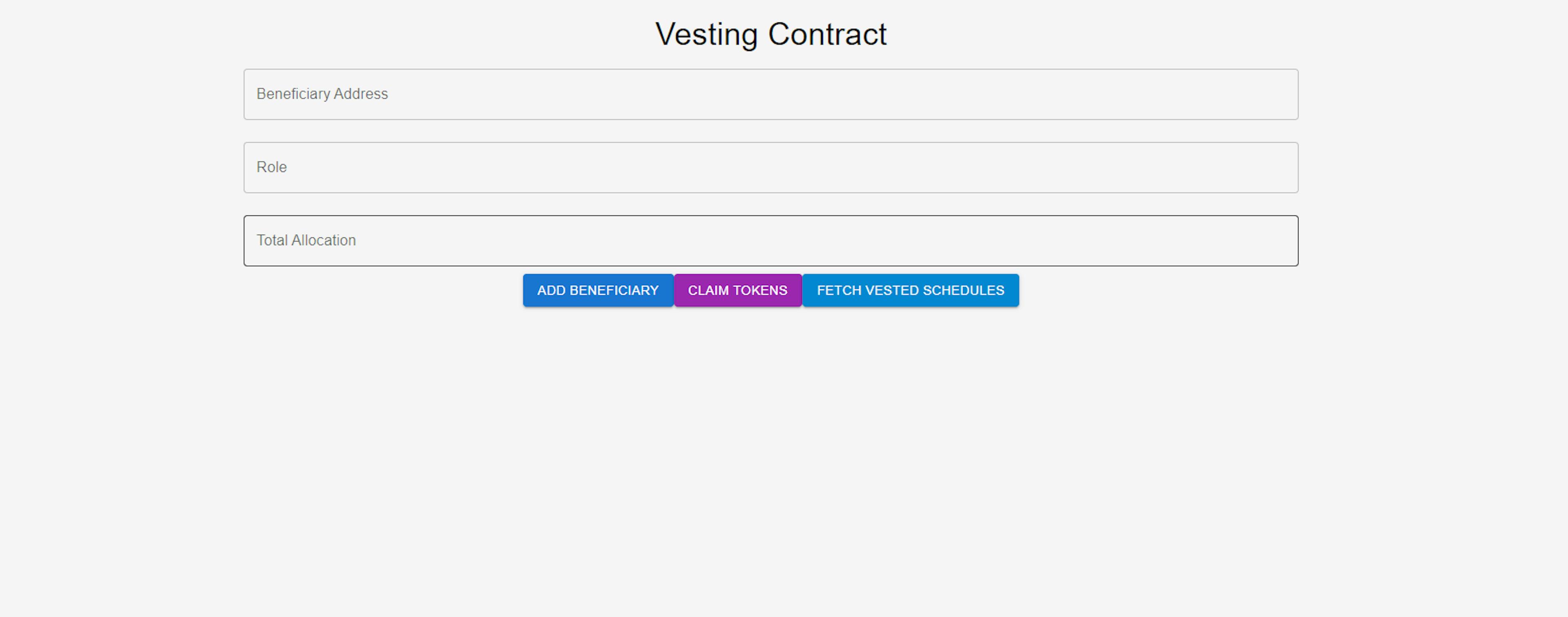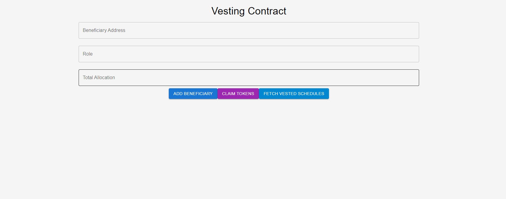 - Token Transfers: Integrated ERC20 token transfers for claiming vested tokens.