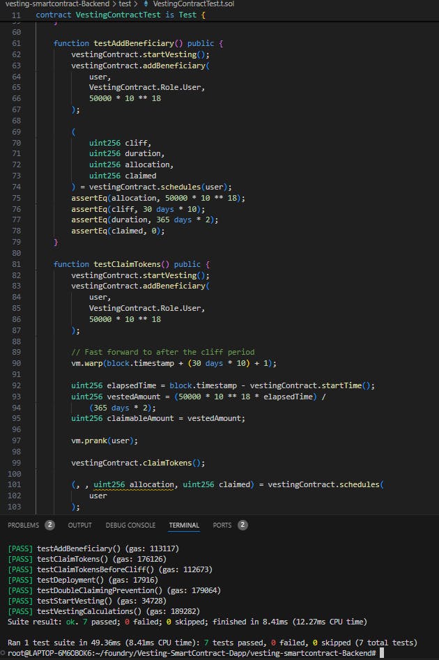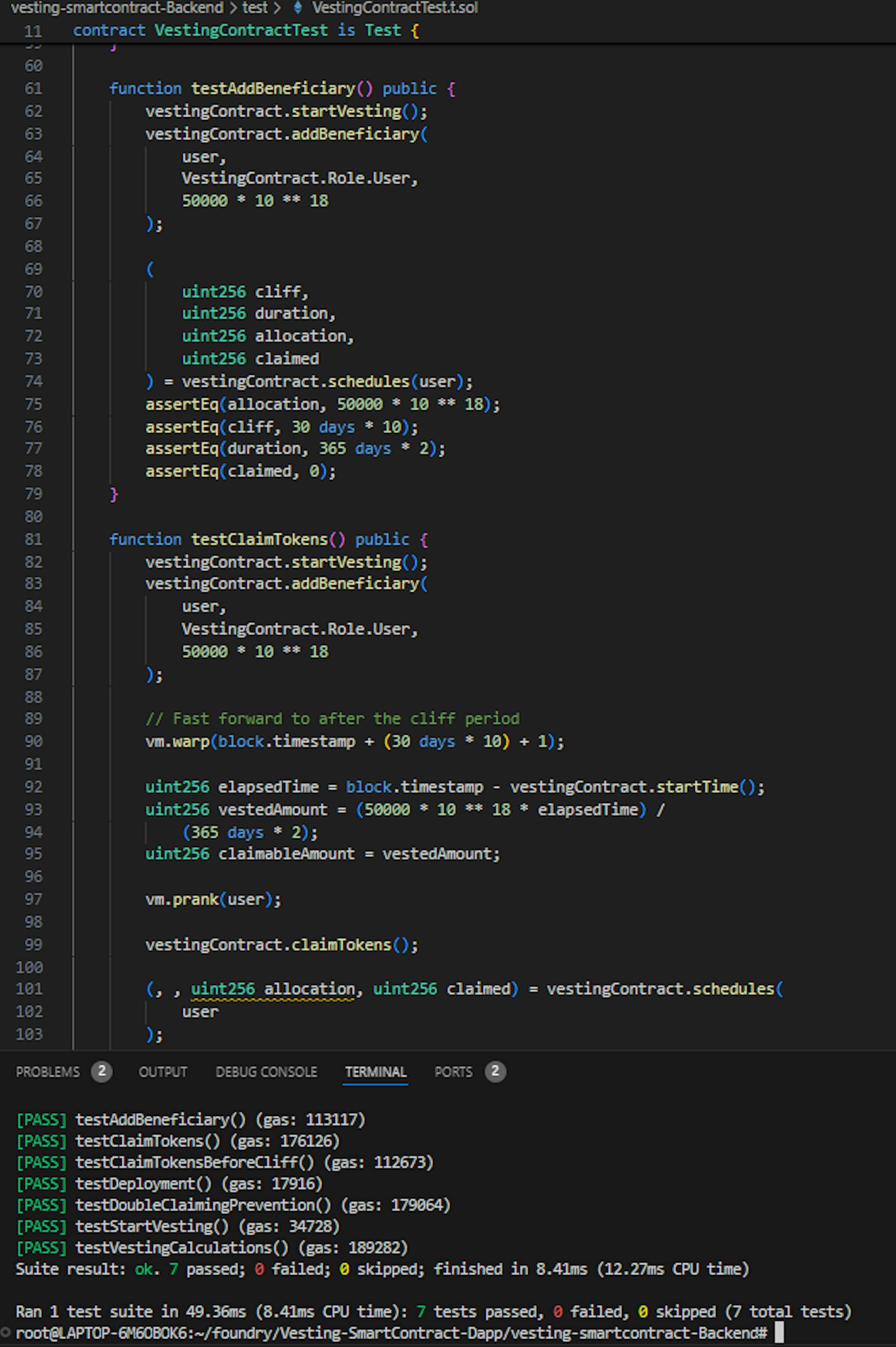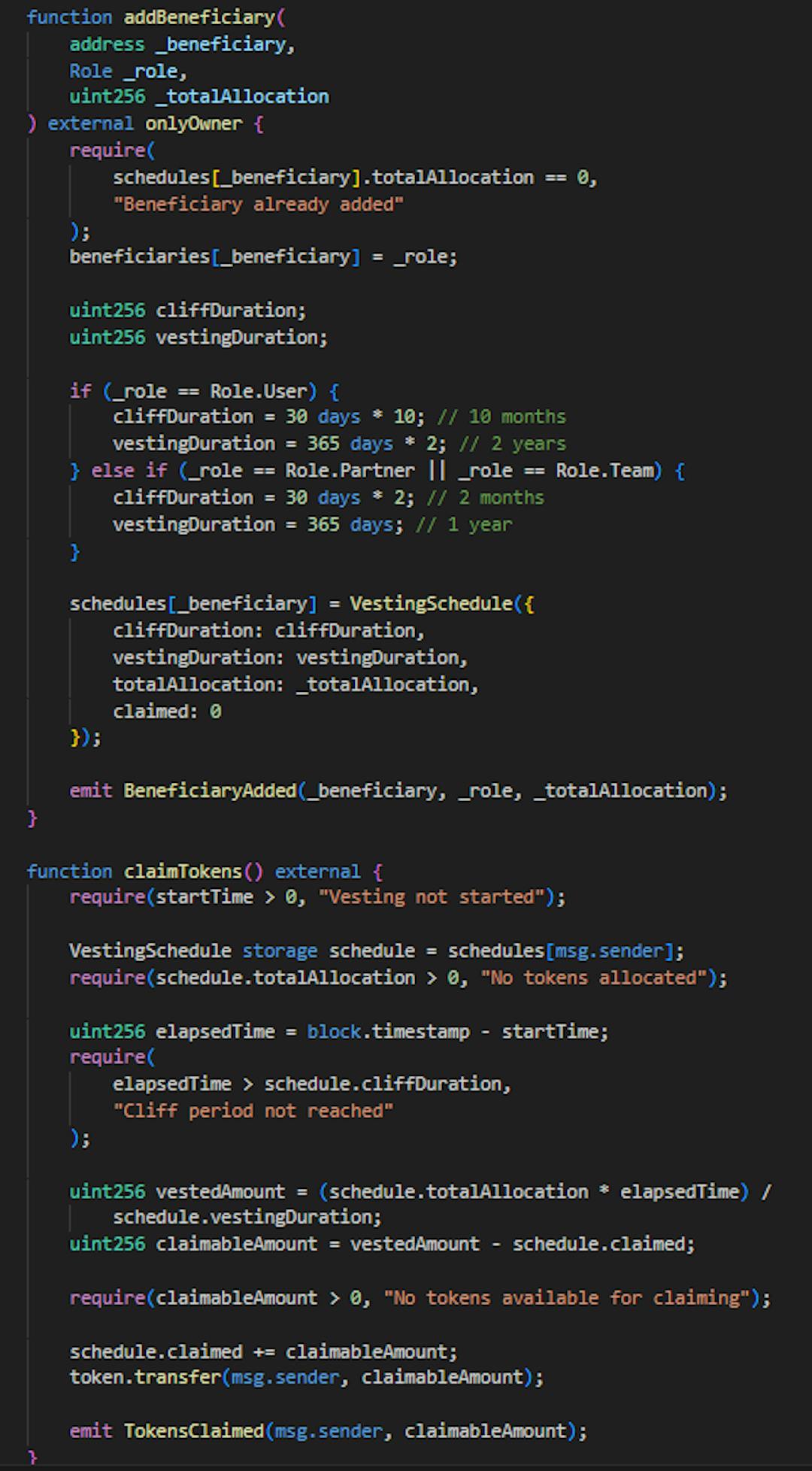 - Token Claiming: Ensured beneficiaries could claim tokens according to their schedules.